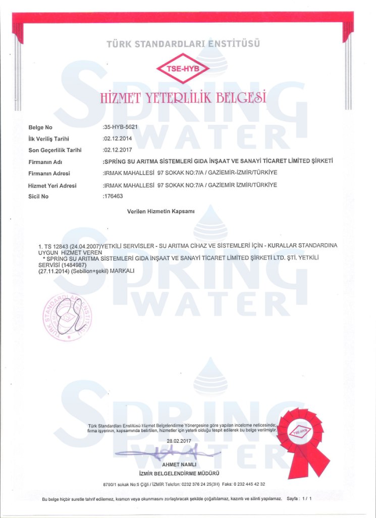 Su arıtma cihazları yedek parçaları temini ve servisi